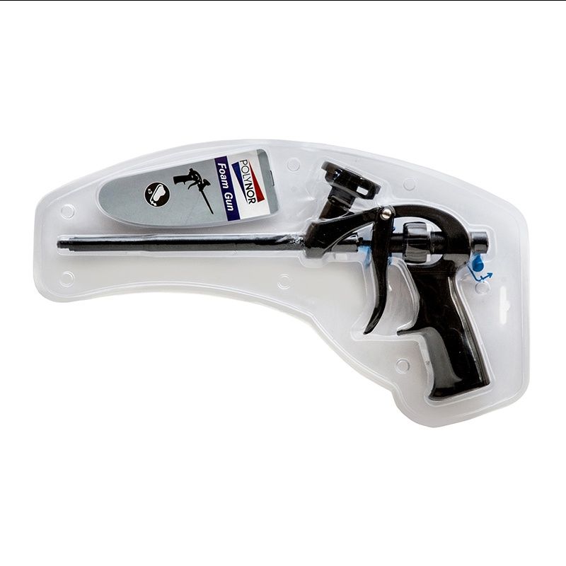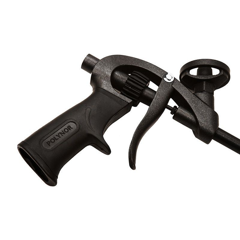 Пистолет POLYNOR Premium Gun имеет тефлоновое покрытие, облегчающее очистку инструмента от утеплителя. Корпус изготовлен из цинкового сплава, что гарантирует долгий срок эксплуатации и стойкость к коррозии. Для удобства в работе есть увеличенный винт регулировки напора утеплителя.